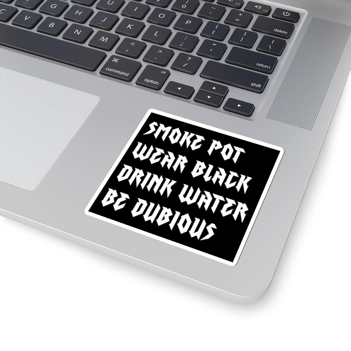 For the unapologetically edgy. Bold white gothic text on a black background, this waterproof sticker is perfect for your laptop, water bottle, or notebook. A must-have for anyone thriving in chaos.
